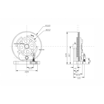 Polea de 320 mm de diámetro, montados sobre rulemanes en todos sus movimientos, siendo libres de mantenimiento y calibrado (precintado de fábrica), provisto de llave trifásica, montado en caballetes, con contacto eléctrico de reposición manual o a distancia.